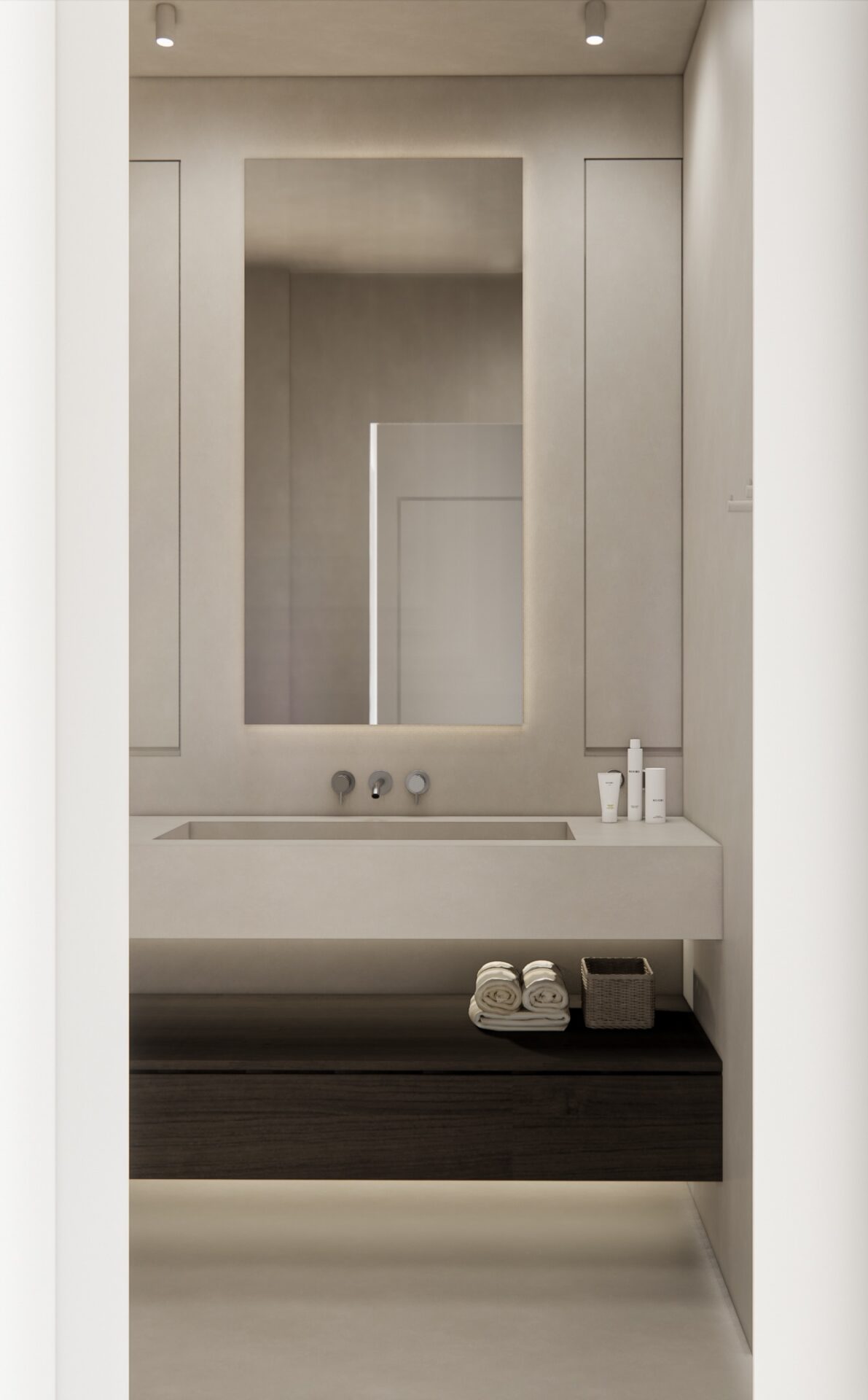 Momenteel hebben we verschillende ontwerpen klaar voor realisatie, waaronder deze keuken- en badkamerrenovatie in een pand gelegen in Zuid-Antwerpen. We kijken ernaar uit om dit project binnenkort tot leven te brengen. De klant koos voor de meest minimalistische versie.